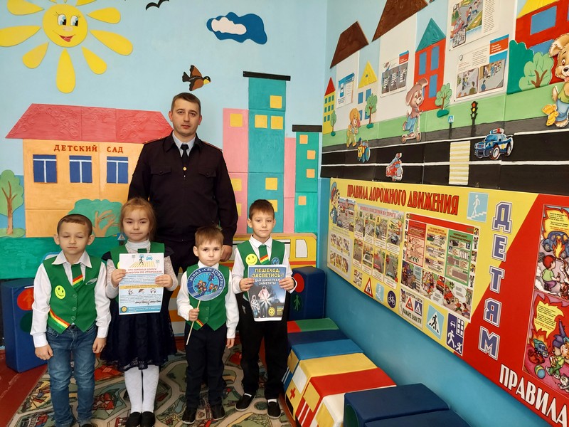 Ребята с отряда ЮПИД «Светофорики» совместно с инициативной группой «Родительский патруль» разработали и изготовили тематические памятки-листовки наглядной агитации, направленные на профилактику детского дорожно-транспортного травматизма. Вместе с инспектором и инициативной группой «Родительский патруль» возле детского сада, провели профилактические беседы с участниками дорожного движения. В ходе мероприятия воспитанники рассказывали стихи о безопасности на дороге, вручали светоотражающие элементы.