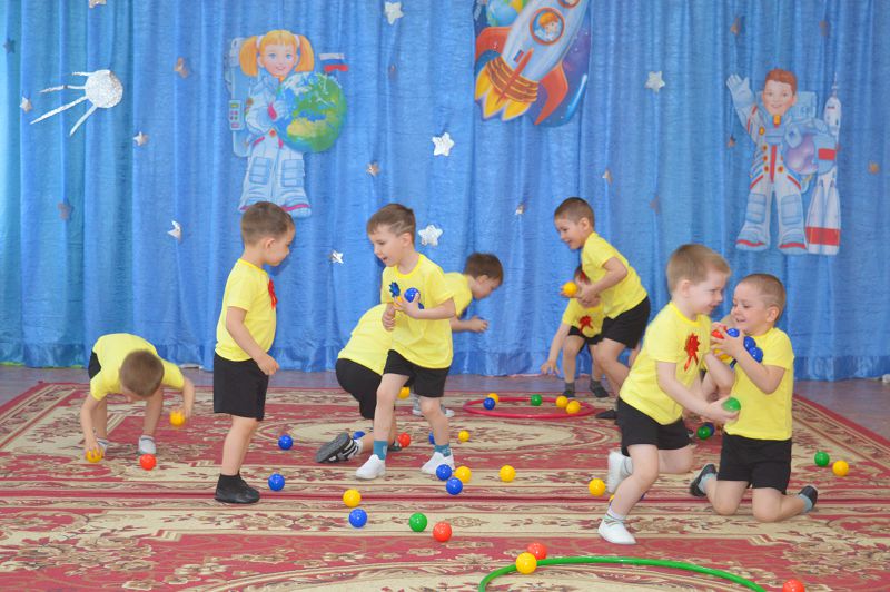 Сегодня в нашем детском саду прошло спортивное развлечение «Школа космонавтов». В мероприятии участвовали две команды: «Ракета» и «Комета». Дети участвовали в разных эстафетах таких как: «Кто быстрее прилетит», «Построй ракету», «Разноцветные планеты», «Невесомость», «Собери звезду», «Звездный путь». В упорной борьбе победила дружба. Такие игры воспитывают у детей целеустремленность в достижении результата, чувство товарищества и ответственности перед командой.