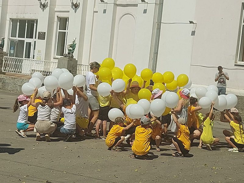 Взрослые вместе с детьми пели, танцевали и участвовали в конкурсах. В ходе флешмоба все дружно выстроились в символ праздника - Ромашку!