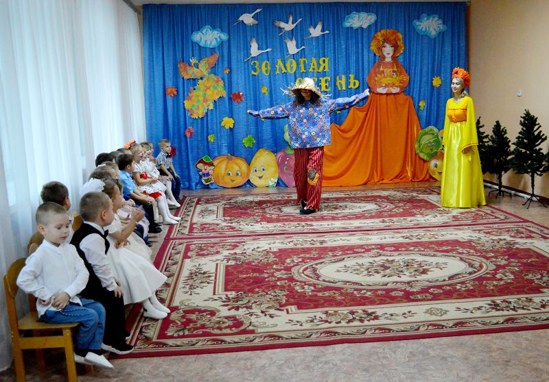 27 октября в средней группе «Пчёлки» прошёл праздник «Осень и Пугало в гостях у ребят». В гости к дошколятам пришла красавица Осень и Пугало, дети исполнили им красивые песни, читали стихи, помогли разобрать урожай на овощи и фрукты. Вместе с Пугалом дети поиграли в веселые игры, отгадывали загадки и весело исполнили танец, играли на ложках под задорную мелодию.