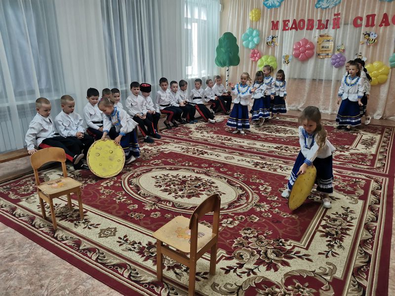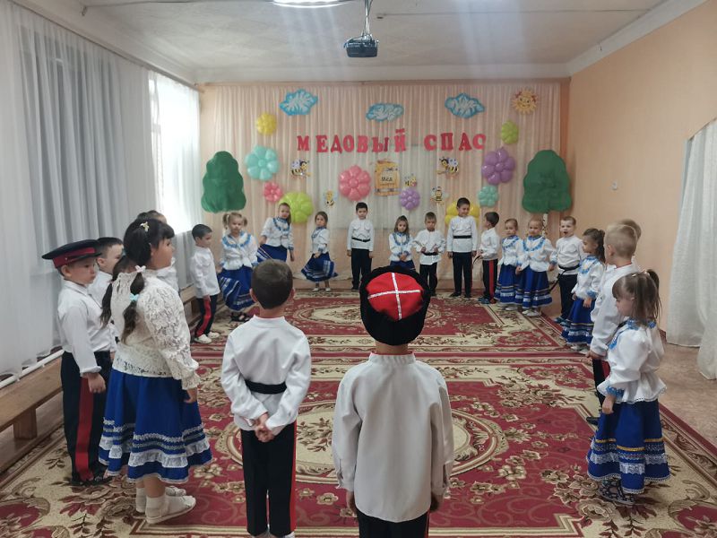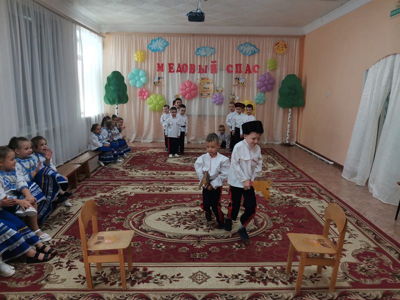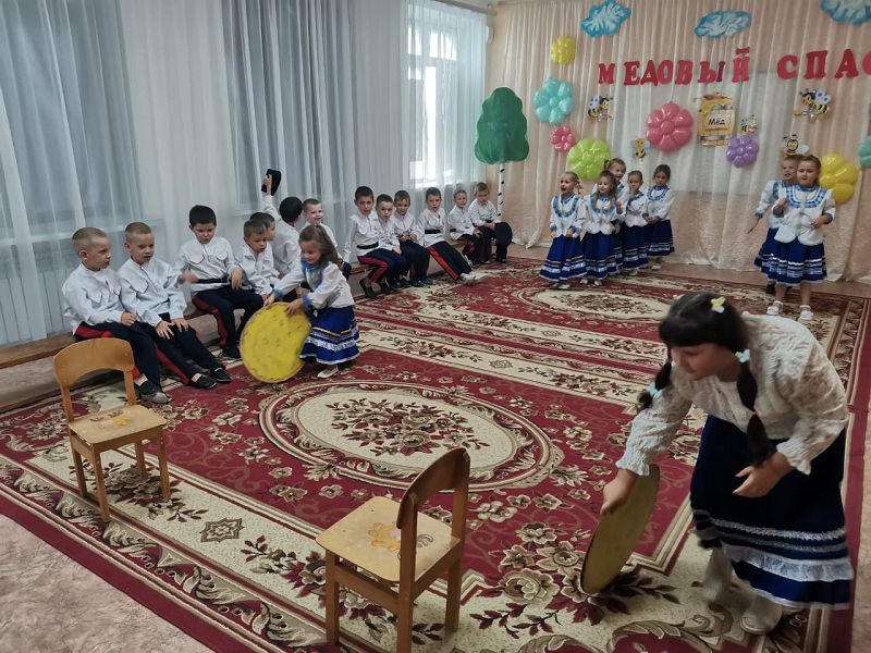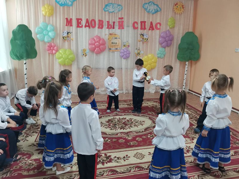Воспитатели групп провели беседу «Медовый спас», рассказав детям много интересного об этом празднике. Ребята узнали, почему медовый Спас получил такое название, как добывали его раньше и сейчас, познакомили с приметами в этот день. В ходе беседы дети пополнили свои знания о пчёлах, их значении в природе. А так же с большим удовольствием пели песни, читали стихи, водили хороводы, участвовали в интересных подвижных играх.