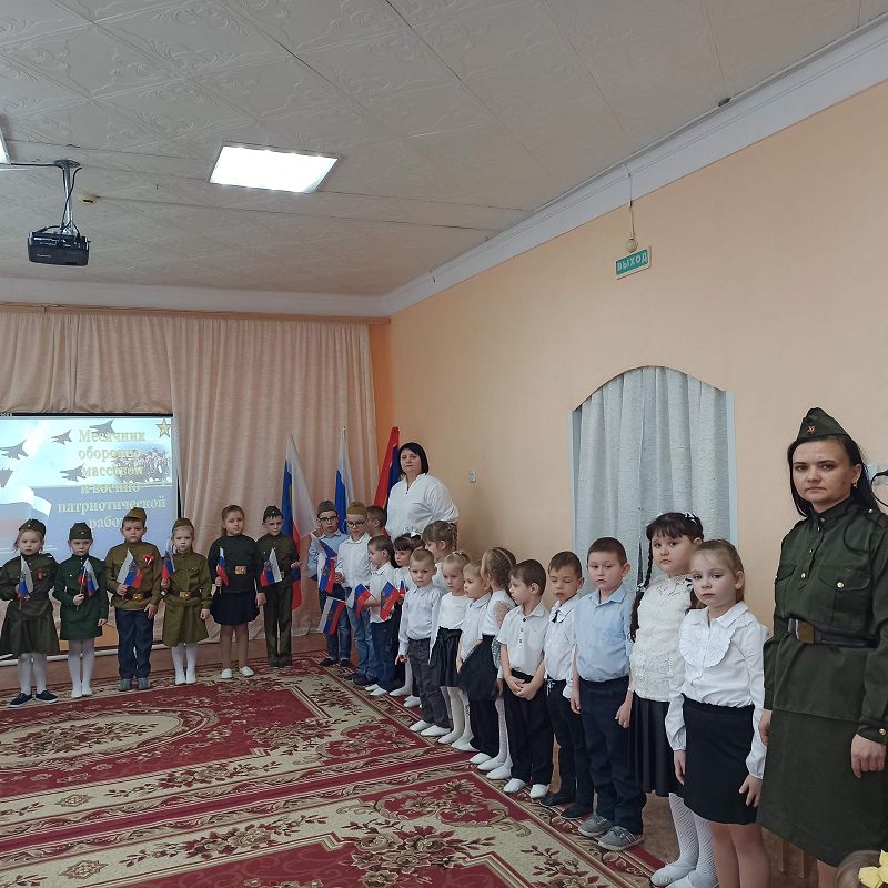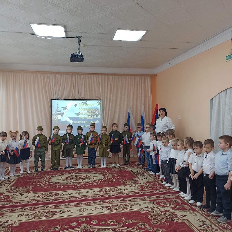 Сегодня в детском саду "Колобок" прошла торжественная линейка, посвящённая открытию месячника оборонно-массовой и спортивной работы. Лобода Анастасия Андреевна поприветствовала всех присутствующих и рассказала о мероприятиях которые будут проходить в течение месяца. Все дружно спели гимн и настроились на отличную патриотическую неделю.