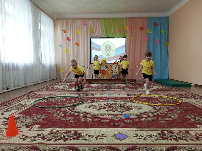 В ходе проведения мероприятия дошколята познакомились с новым термином «ГТО». Ребята узнали смысл этого выражения, его значение для каждого человека и для всей большой страны. Мероприятие прошло в виде испытаний, которые входят в комплекс нормативов ГТО.
