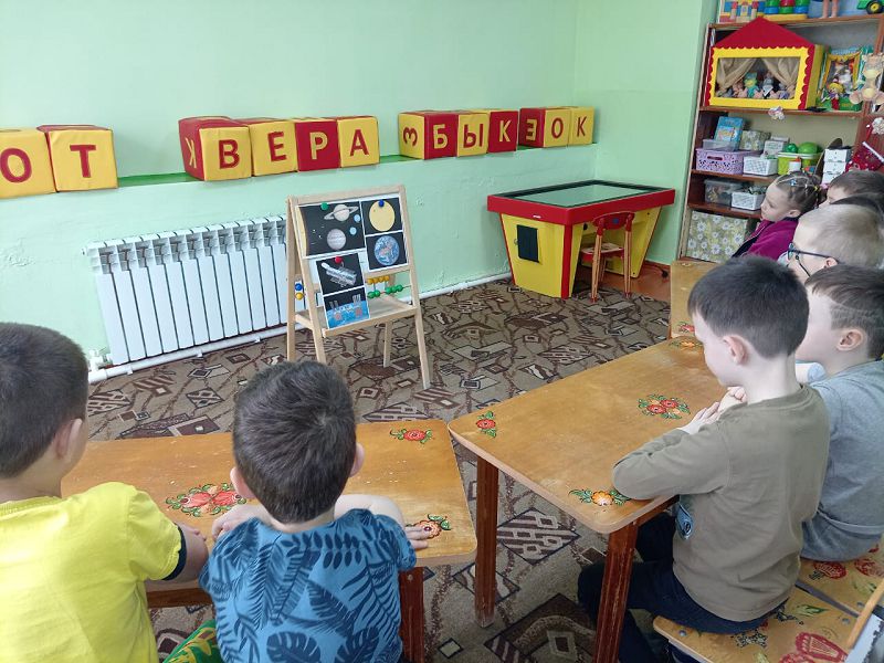 Наши воспитанники в течение недели знакомились с информацией о первом полёте человека в космос, о планетах Солнечной системы, о Вселенной.
