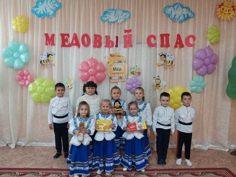 Воспитатели групп провели беседу «Медовый спас», рассказав детям много интересного об этом празднике. Ребята узнали, почему медовый Спас получил такое название, как добывали его раньше и сейчас, познакомили с приметами в этот день. В ходе беседы дети пополнили свои знания о пчёлах, их значении в природе. А так же с большим удовольствием пели песни, читали стихи, водили хороводы, участвовали в интересных подвижных играх.