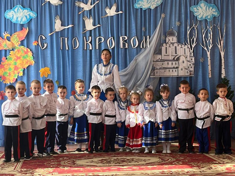 В нашем детском саду были организованы: «Казачьи посиделки», посвящённые Покрову Пресвятой Богородицы, в которых принимали участие дети старшей группы "Гномики, педагоги и родители воспитанников.
