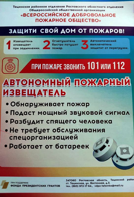 Памятка о необходимости установки автономных дымовых пожарных извещателей в жилые помещения